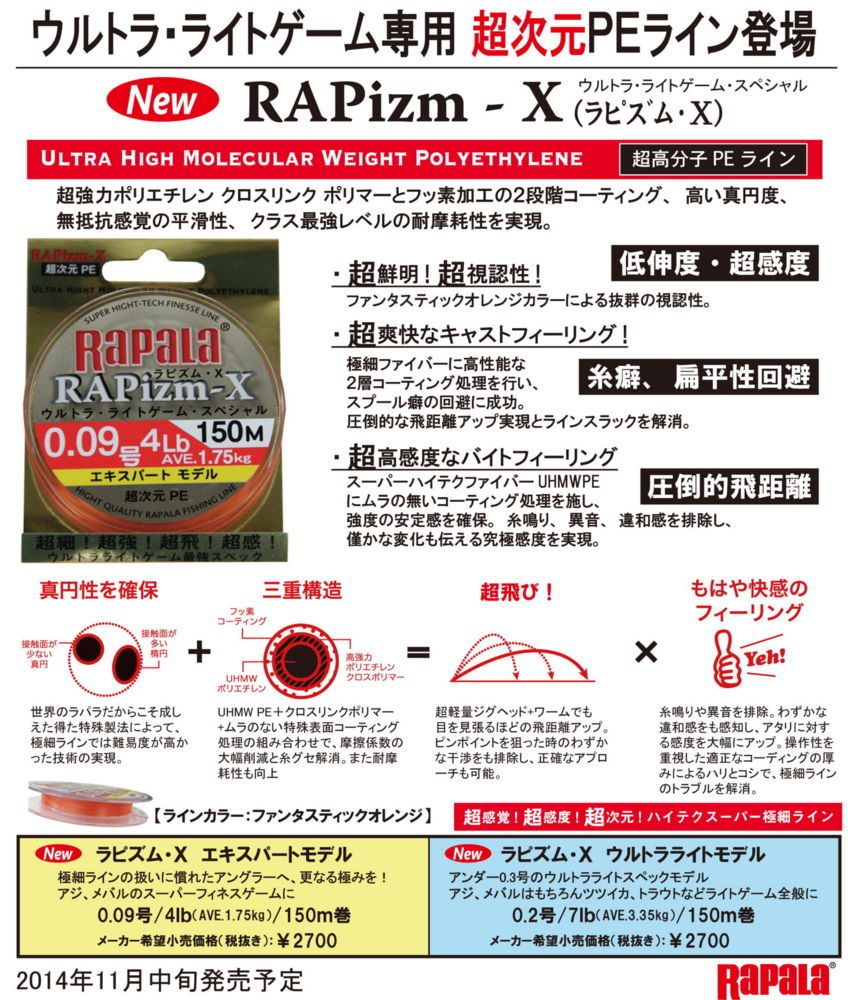 ラパラ ラピズムX エキスパートモデル 150m 0.09号RAPARA PAPIZM-X EXPERT-MODELラパラ ラピズム X エキスパートモデル 0.09号 フィッシング 釣り具 ライン 糸 PE ラインアジ メバル メッキ 五目 ライトゲームウルトラライトゲーム専用 超次元!超感覚ラインの登場です。